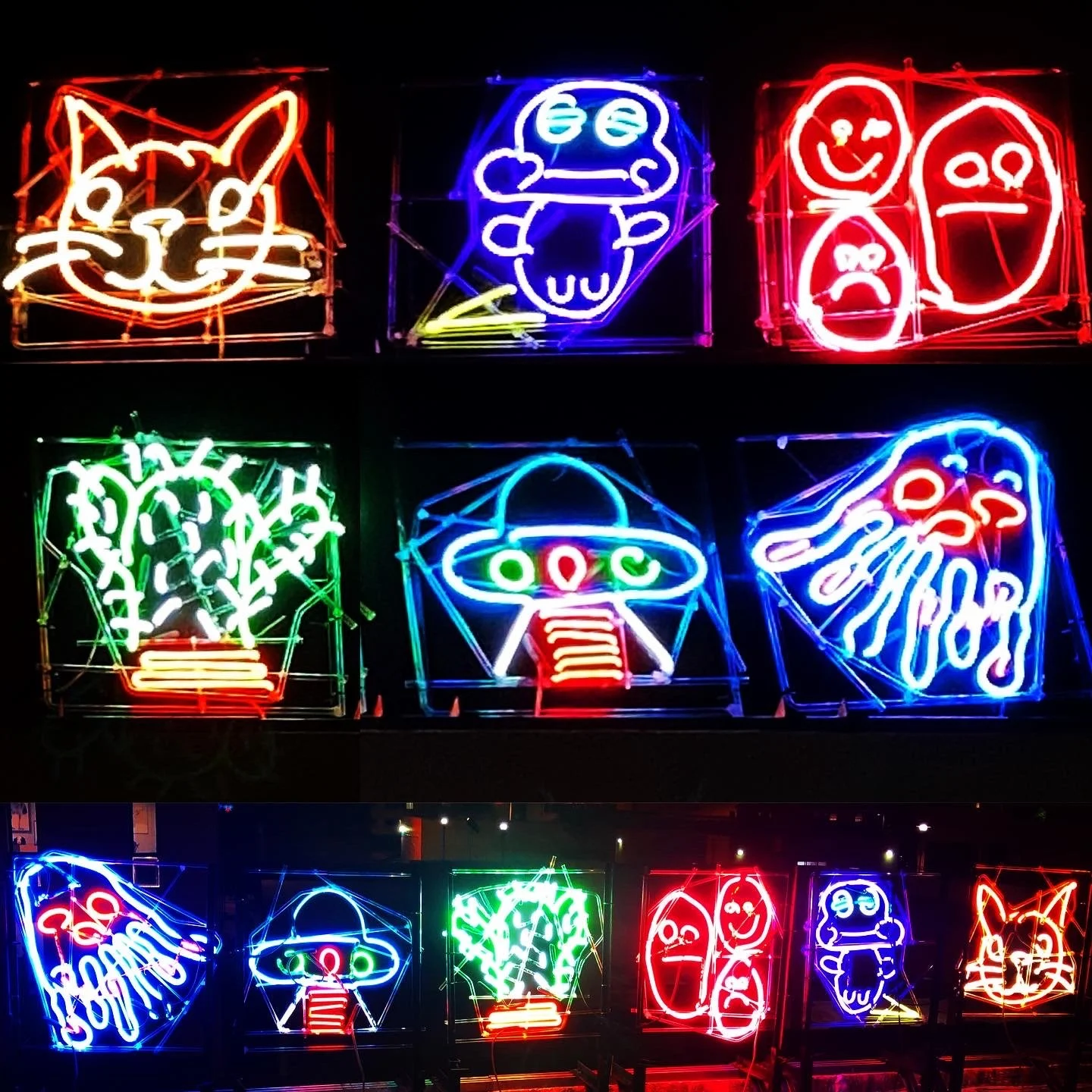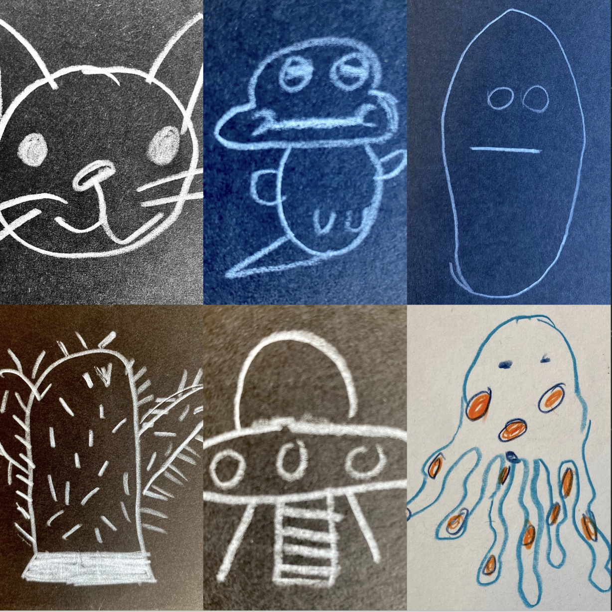 From Left To Right: Squid Will, UFO, Cactus, Faces, Bonnie the Monster, Cat